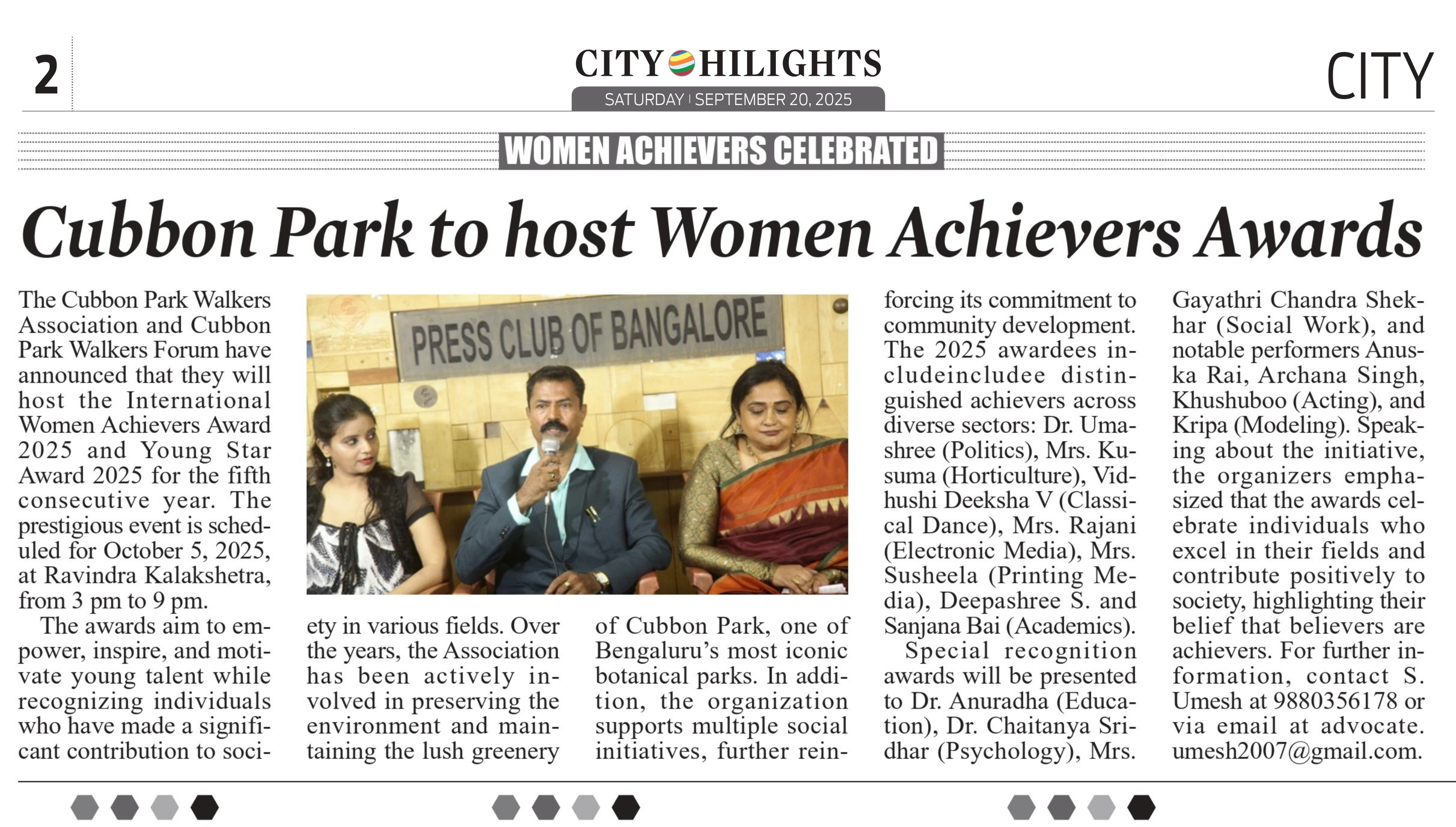 Press Coverage - International Women Achievers Award on 5 Oct 2025